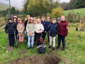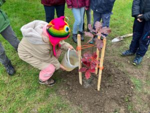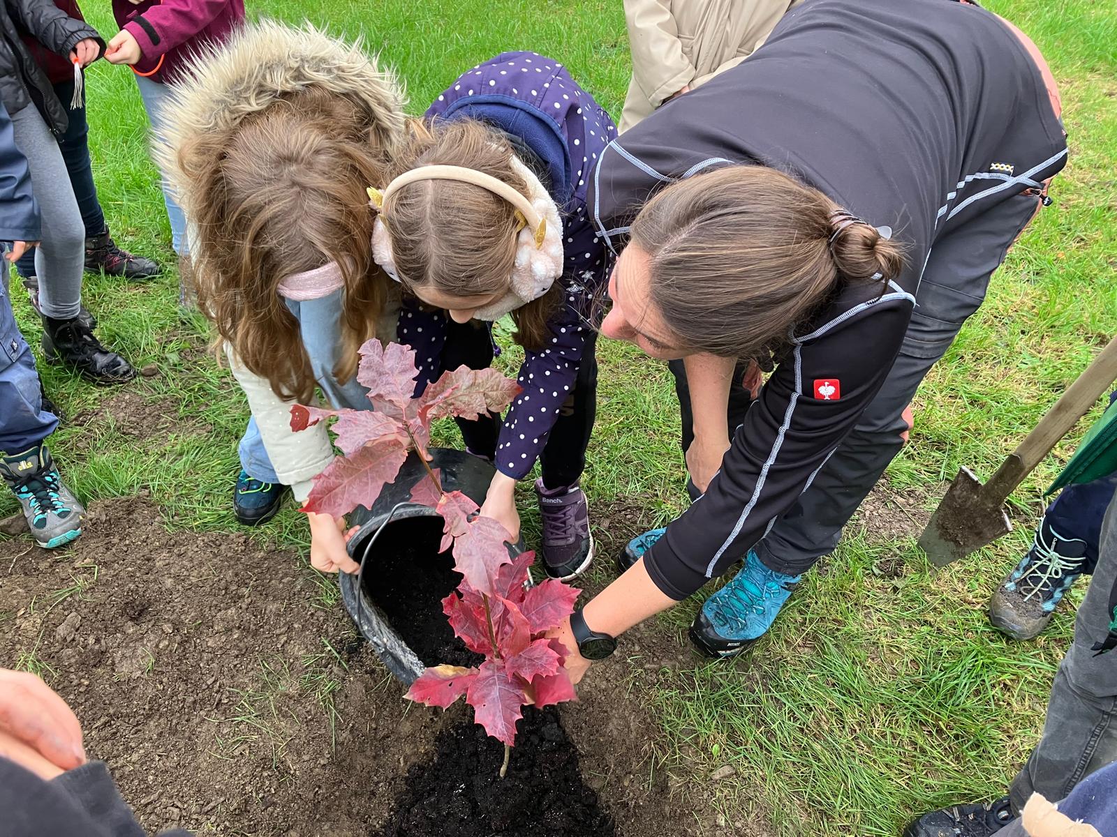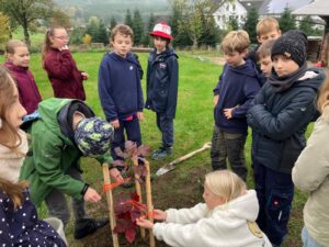 Bei den Waldjugendspielen, die vor Kurzem stattfanden, bekamen die vierten Klassen den Baum des Jahres geschenkt- die amerikanische Roteiche.