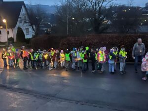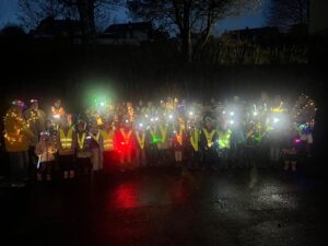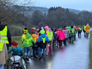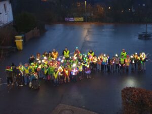 An diesem Tag kamen alle Grundschulkinder und Schulteams mit Reflektoren, Warnwesten, heller Kleidung, Blinklichtern oder Lichterketten ausgestattet zur Schule.