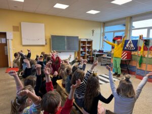 Der Verkehrszauberer war in der 1. Klasse in Fretter zu Besuch.