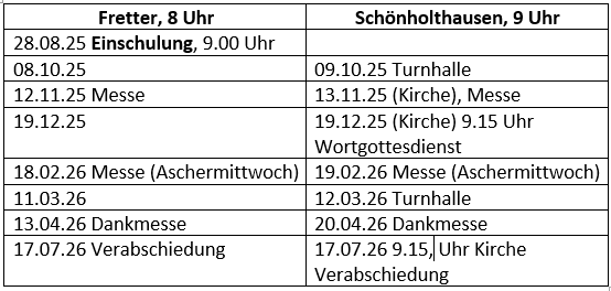 Termine der Schulgottesdienste im Schuljahr 2025/26: